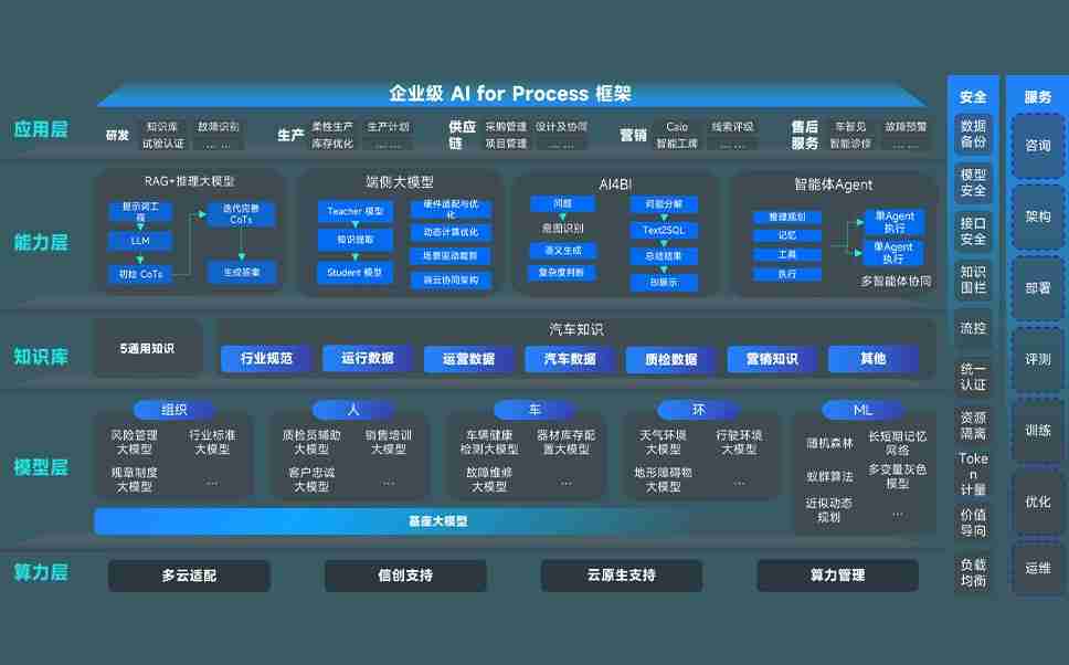 征途国际问学智车解决方案是一套基于AI技术的汽车行业智能化系统,,,覆盖从底层算力到顶层AI应用的全栈方案。。。方案由算力层、、、模型层和应用层组成:算力层,,方案支持多种一体机配置,,,,具备云端灵活部署、、、、多云适配以及动态优化计算资源的能力;模型层,,,征途国际问学平台版提供了企业级AI应用一站式构建与管理平台,,,,支持基于后训练强化技术的汽车企业专属模型的训练、、、、评测和运营;应用层,,,征途国际问学DeepSeek版提供包括超级员工、、、、智能招采、、、、智能营销、、智能客服、、、、AI for BI等一系列解决方案,,,,可助力汽车行业实现数字化转型,,,让管理更智能、、、、响应更敏捷。。